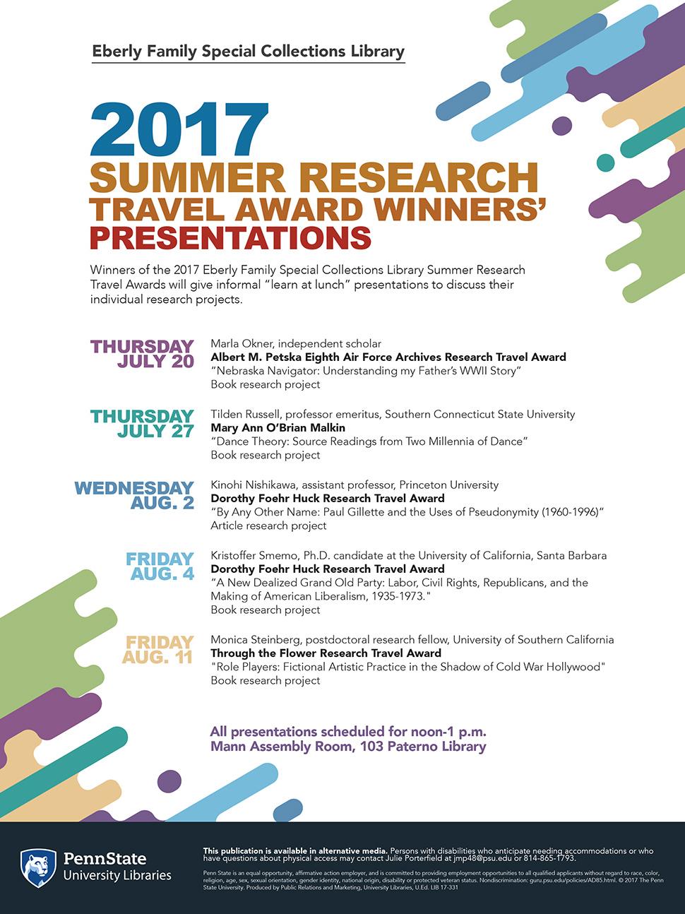 “Role Players: Fictional Artistic Practice in the Shadow of Cold War Hollywood,” Eberly Family Special Collections Library Summer Research Travel Awards, Penn State University (August 11, 2017)